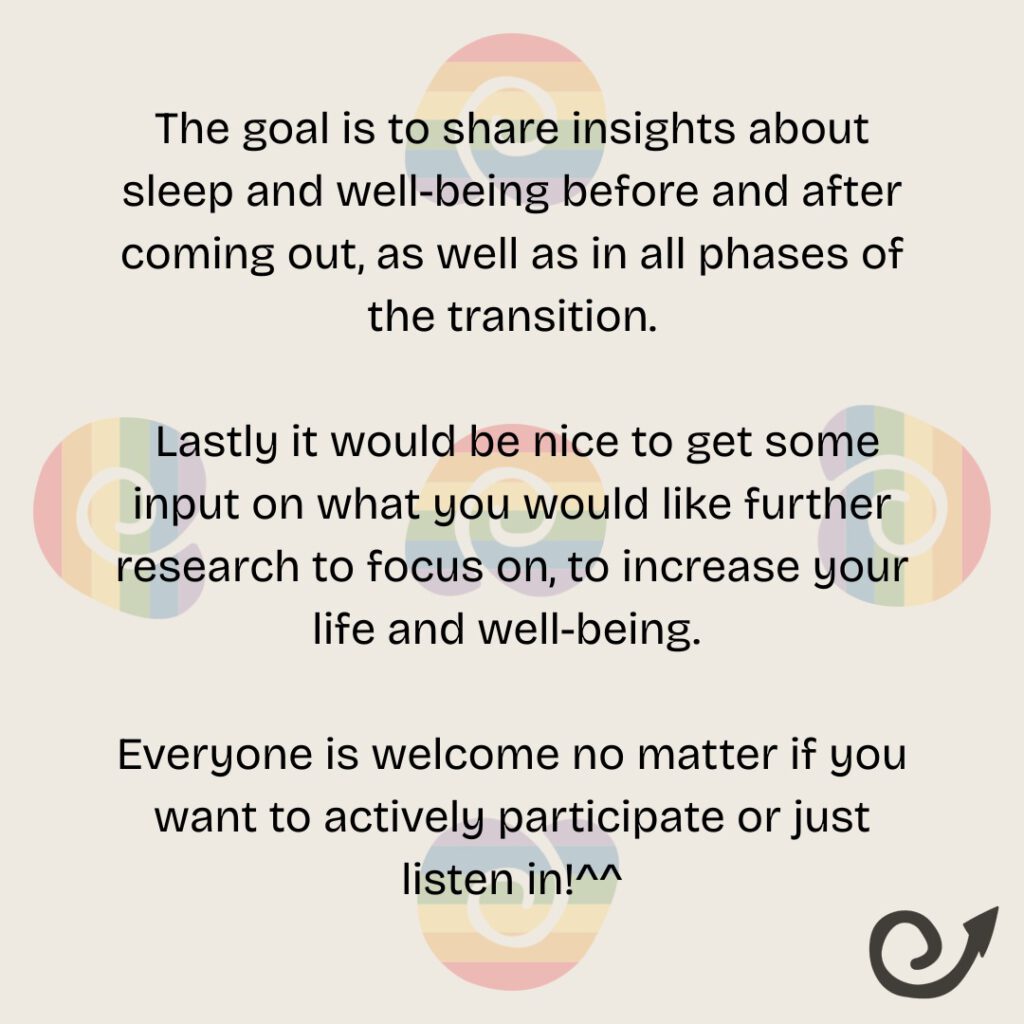 The goal is to share insights about sleep and well-being before and after coming out, as well as in all phases of the transition.
