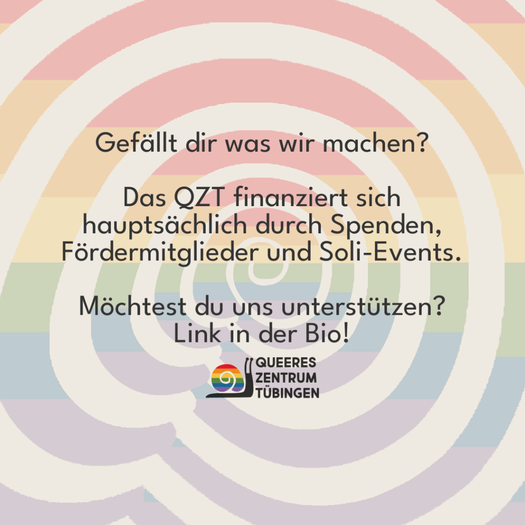 Schick ihnen gerne unseren Post weiter oder schreib uns eine Mail (info@queereszentrumtuebingen.de)