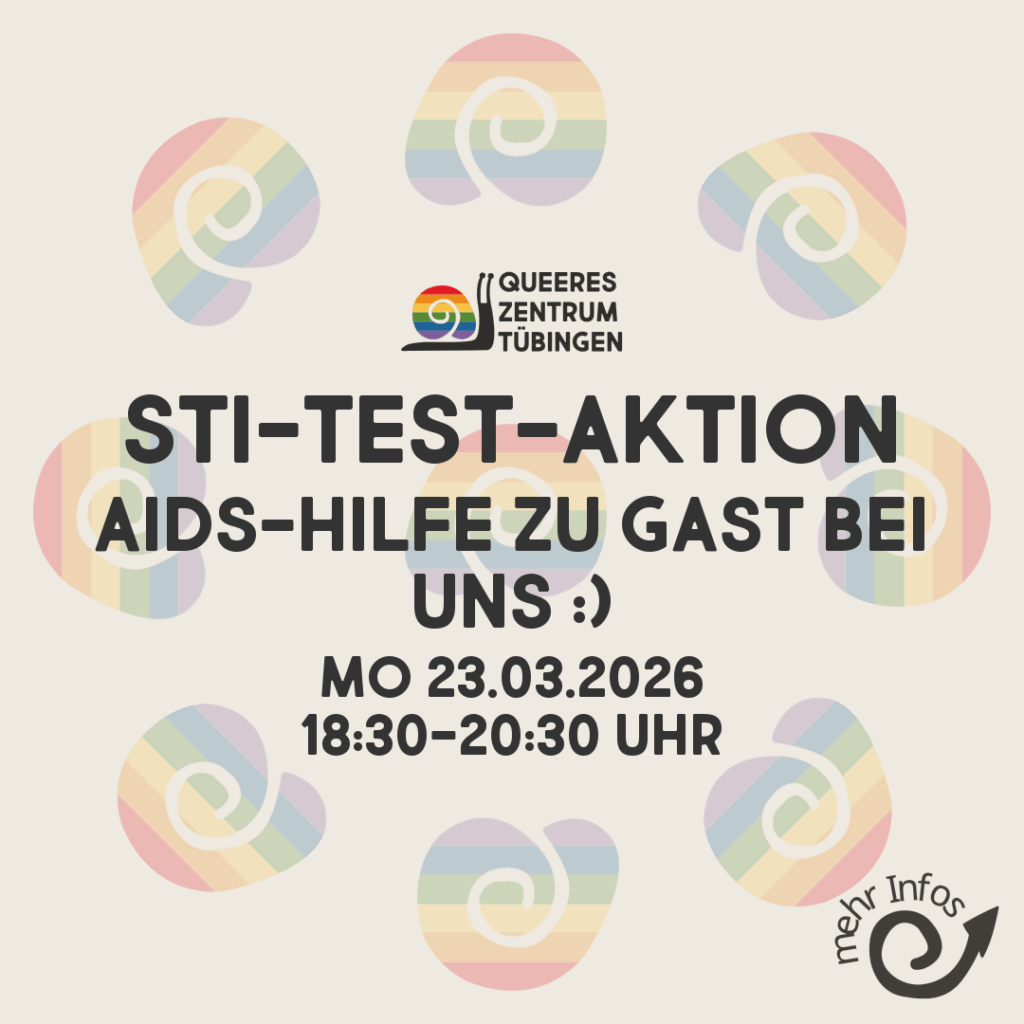 On Monday, March 23, 2026, from 6:30-8:30 PM, AIDS-Hilfe will be our guest at the Queer Center Tübingen in Derendinger Straße 41 🙂